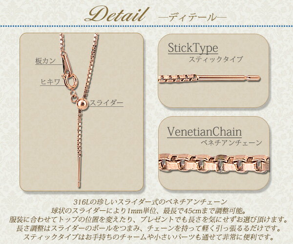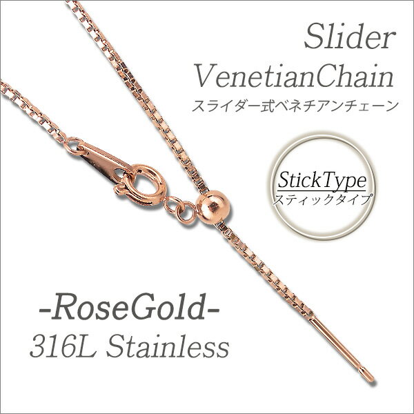 ステンレス ネックレスチェーン ネックレス チェーン スライド ベネチアンチェーン スライドピン ベネチアン スライダー サージカルステンレス ベネ スティック ローズゴールド ピンク 45cm アクセサリー レディース 金属アレルギー対応 アジャスターチェーン プレゼント