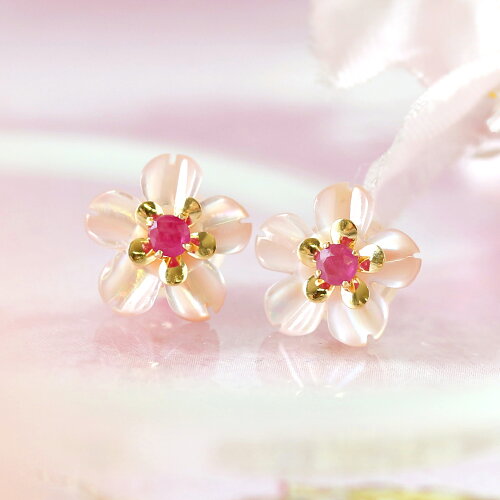 【あす楽対応】ピアス レディース 桜 10金 ルビー ピンクゴールドピアス・セリゼ 大人気 さくらモチーフ ピンクトルマリン お花 フラワー 10K K10 誕生日プレゼント 女性 春 お花見 可愛いピアス ジュエリー 華奢 シンプル デザイン 人気 おすすめ ブランド 宝石